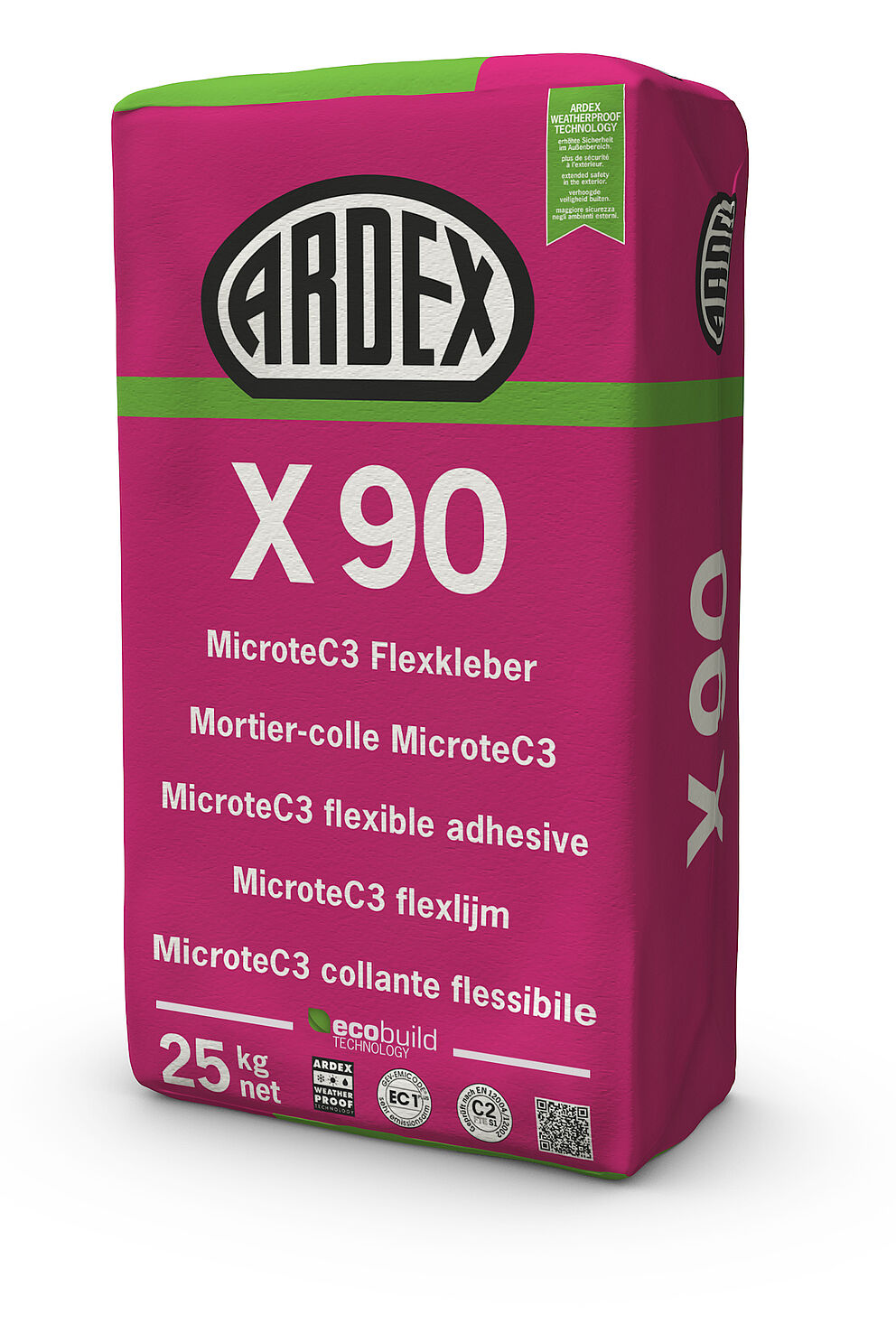 Der Fliesenkleber ist durch den Einsatz erneuerbarer Rohstoffe sowie seiner extrem hohen Lebensdauer und dem breiten Anwendungsspektrum nachhaltiger als vergleichbare Produkte. Außerdem ist er bereits nach drei Stunden begehbar und hat eine sehr hohe Anfangshaftung, was den Verarbeitungskomfort deutlich erhöht. Mit ARDEX X 90 lassen sich keramische Fliesen, Platten, Klinker, Spaltplatten oder Mosaike problemlos verlegen.