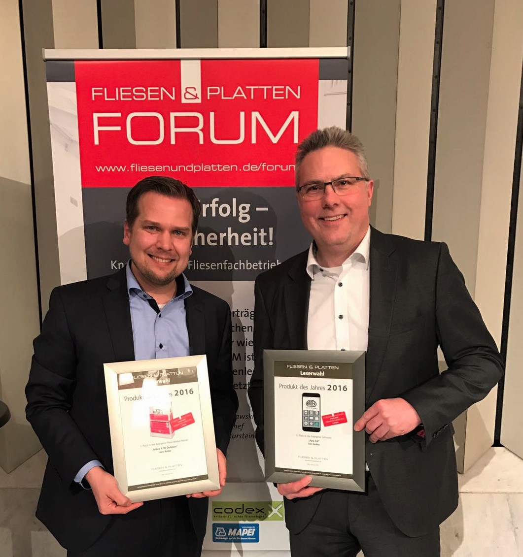 „Wir freuen uns riesig, dass wir mit unserem neuen MicroteC3 Flexkleber <link http: www.ardex.de microsites ardex-x90.htm external-link-new-window external link in new>ARDEX X 90 OUTDOOR in der Kategorie „Fliesenkleber/Mörtel“ den ersten Platz gewonnen haben“, so Dr. Markus Stolper, Marketing- und Vertriebsleiter Deutschland bei Ardex.