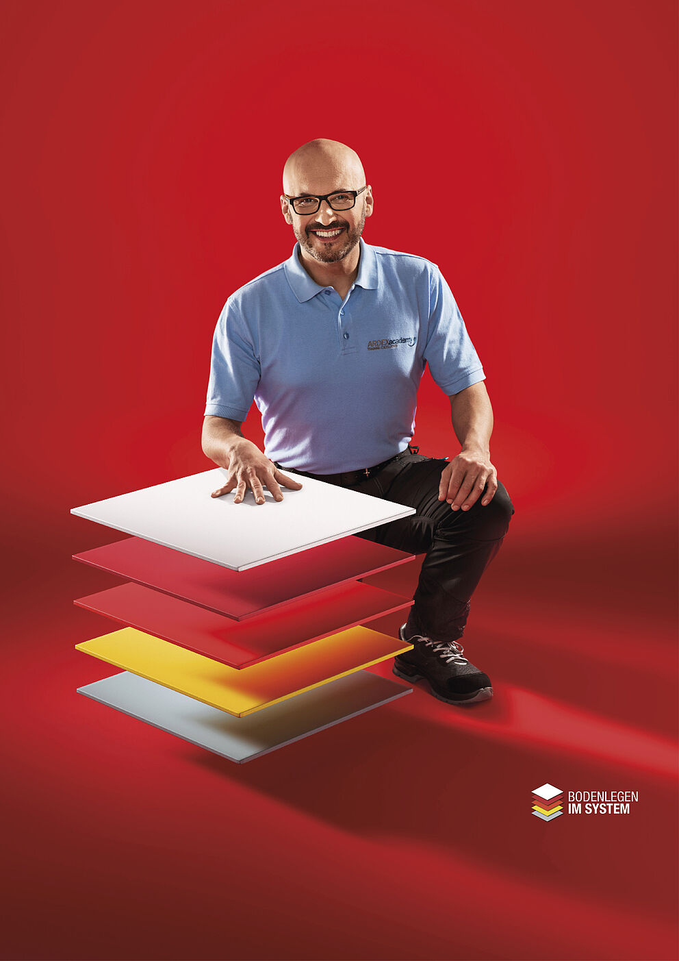Im Zuge der neuen Technologie hat Ardex auch die Kommunikation rund um die Bodenprodukte neu gestaltet. „Seit 2017 haben wir unsere Bodenprodukte mit den plakativen ‚Teufelskerlen‘ kräftig vorangebracht“, sagt Dr. Markus Stolper, Ardex-Geschäftsführer Marketing und Vertrieb. „Jetzt rücken wir den Systemgedanken unter dem Claim ‚Bodenlegen im System‘ stärker in den Fokus.“ Im Mittelpunkt stehen dabei die fünf Schichten für alle Systemelemente: Estrich, Untergrundvorbereitung, Bodenspachtelmasse, Bodenbelagsklebstoff, Oberbelag.