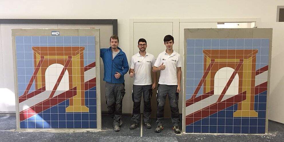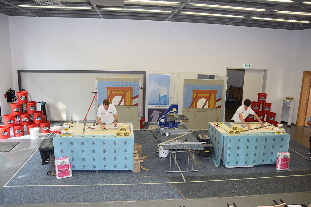 Im zweitätigen Trainingscamp bei Ardex wurden die Tätigkeiten geübt, die auch im Wettbewerb gefordert sind: Schneiden und legen von Fliesen mit höchster Präzision – und mit anspruchsvollen Motiven. Meist handelt es sich bekannte Gebäude der Gastgeberstadt des Wettbewerbs. Bei Ardex wurde eine Wand mit der Kettenbrücke über die Donau gefliest. Dieses Motiv gehört mit zum deutschen Aufgabenvorschlag für die EuroSkills. Jedes Land kann einen Vorschlag unterbreiten, die Jurymitglieder wählen einen Vorschlag aus und veröffentlichen diesen eine Woche vor dem Wettbewerb. Dieser Vorschlag wird vor Ort aber noch einmal um 30 Prozent abgewandelt.