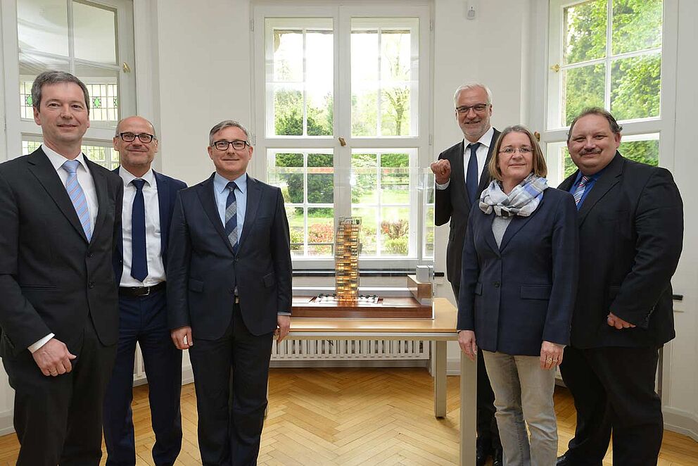 Garrelt Duin, Minister für Wirtschaft, Energie, Industrie, Mittelstand und Handwerk des Landes Nordrhein-Westfalen, hat am vergangenen Freitag das Bauchemieunternehmen Ardex besucht. Er informierte sich über die langjährige Tradition, aber natürlich auch über die Zukunftspläne von Ardex, unter anderem über den umfangreichen Standortausbau des Familienunternehmens. Weitere Teilnehmer an dem Treffen waren die Landtagsabgeordneten Prof. Dr. Rainer Bovermann, Hubertus Kramer und Thomas Stotko, die Landtagskandidatin Dr. Nadja Büteführ und der Baudezernent der Stadt Witten, Stefan Rommelfanger.