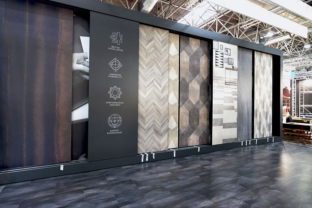 Nach Abschluss der fünftägigen Messe wurde der komplette Messestand abgebaut, inklusive der Wandpaneele und Bodenbeläge. Verwendet werden sie wohl nicht mehr. „Wenn zwei wichtige Messen innerhalb weniger Wochen aufeinanderfolgen, kommt es vor, dass wir dabei das gleiche Konzept verfolgen und dieselben Bauteile verwenden“, erklärt Kirsten Krämer von Amtico. Anfang 2017 war das auf der Messe BAU in München und der Euro-Shop in Düsseldorf der Fall. Wenn nur eine zentrale Messe im Jahr stattfindet, tritt der Hersteller von Designbelägen aber jeweils mit einem neuen Konzept und einem komplett neuen Messestand auf. „Wir wollen uns ja aktuell und modern präsentieren. Dazu gehört dann auch ein individuelles Standkonzept, bei dem alles maßgeschneidert ist“, so Marketingleiterin Krämer weiter.