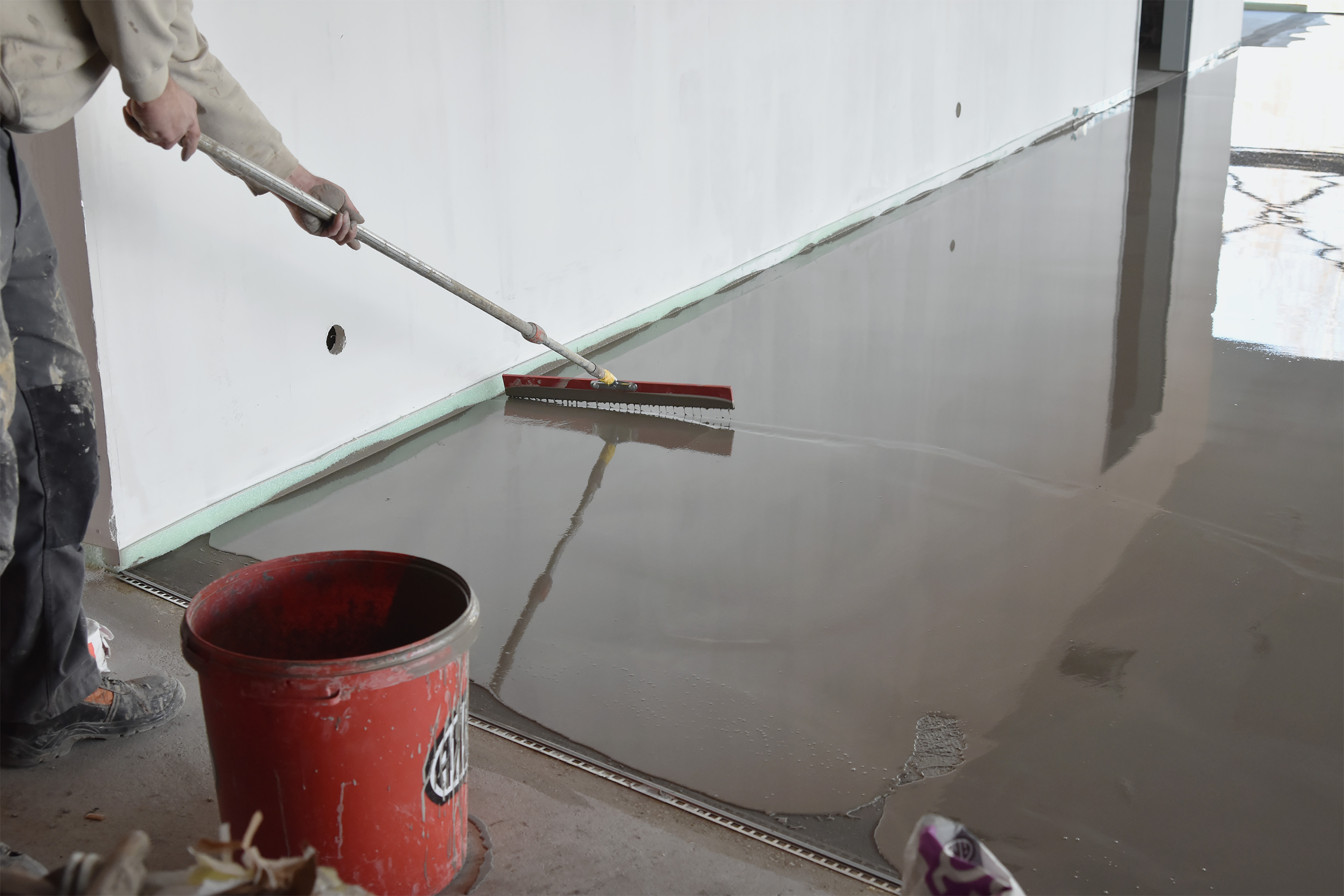 „Wenn bei klassischem Portlandzement-Estrich das Wasser verdunstet, kommt es zu Aufschüsselungen“, erklärt Ardex-Gebietsleiter Bernd Roosen. „Mit dem ARDEX A 58 sind keine Randabsenkungen zu befürchten, weil er weitestgehend schwundfrei ist.“ Denn das Anmachwasser wird nahezu vollständig kristallin gebunden und es muss nur wenig Wasser austrocknen. In diesem Falle profitierten davon auch die anderen Gewerke ganz direkt: Da es keine spürbare Feuchtigkeit gab, konnten große Flächen mit einer geringen Anzahl Dehnungsfugen verlegt werden. Und das schon nach vier Tagen. Und auch die Maler konnten auf trockenen Untergründen schneller arbeiten. „An den Produkten von Ardex schätze ich, dass sie von vorne bis hinten durchdacht sind. Ich bekomme einfach mehr Leistung – und das rechnet sich“, so Krüger. „Denn am Ende des Tages muss ich den Kopf dafür hinhalten, dass alles pünktlich läuft.“