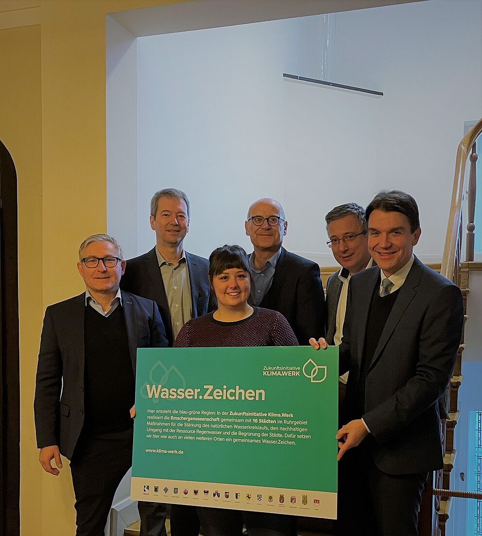 Das Wasser.Zeichen steht als Symbol für Projekte, die den natürlichen Wasserkreislauf in den Städten stärken und für einen nachhaltigen Umgang mit Regenwasser sorgen. Es soll an vielen Stellen im Ruhrgebiet zeigen: Es wird am klimafesten Umbau der Region gearbeitet. Wie zum Beispiel am Wittener Standort der Ardex GmbH an der Friedrich-Ebert-Straße. Im Zuge von Umbauarbeiten und einer Erweiterung des Firmengeländes hat der Hersteller von chemischen Spezialbaustoffen auf die naturnahe Regenwasserbewirtschaftung umgestellt – durch Abkopplung von 28.400 Quadratmetern Hallendachfläche von der Mischkanalisation.