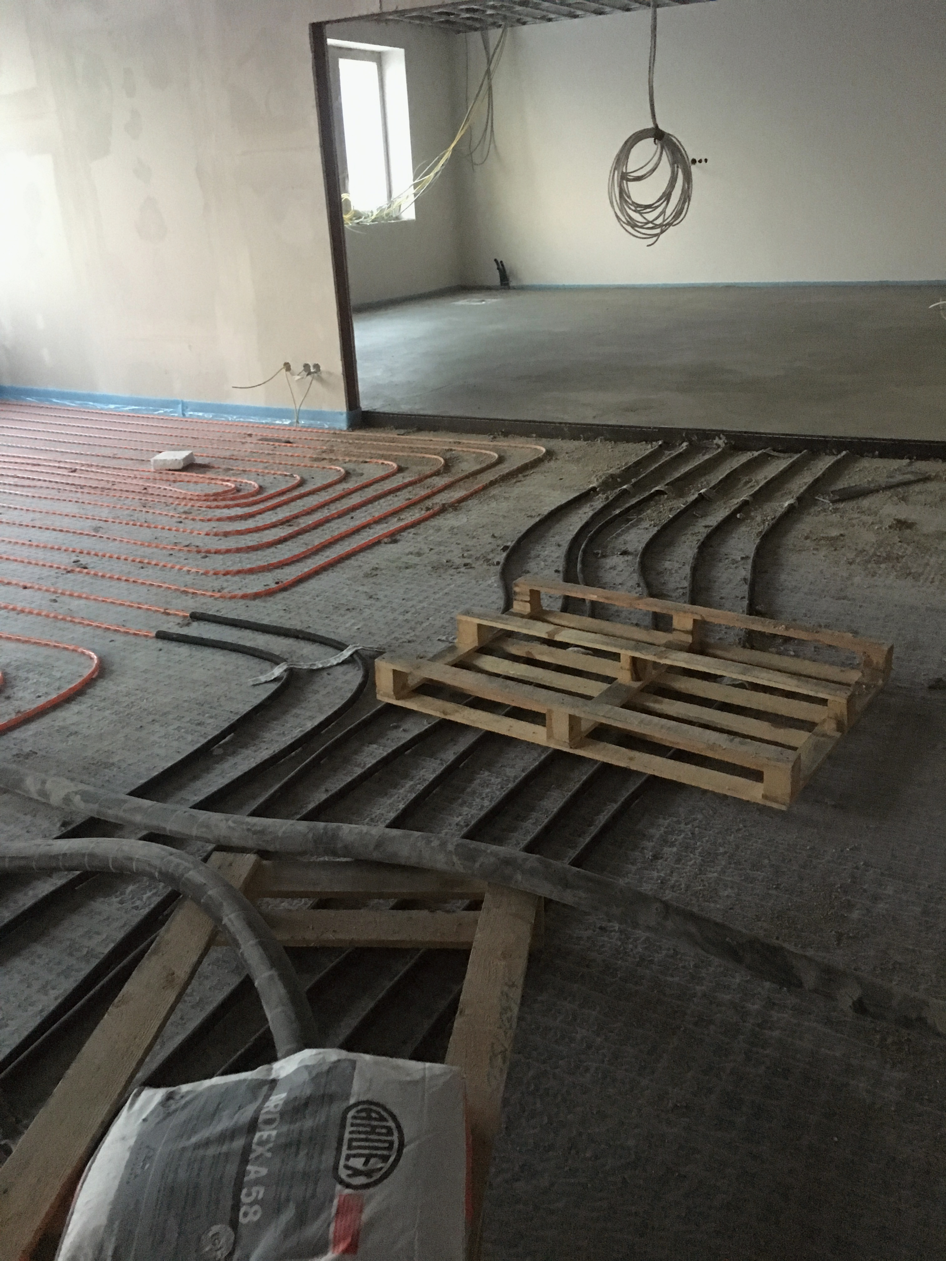 Auf rund 90 Prozent der Fläche wurde der Estrich als Heizestrich ausgeführt. Gerade hier zeigt sich der Vorteil von ARDEX A 58: Der Heizestrich kann bereits nach drei Tagen aufgeheizt werden, statt wie sonst üblich nach 21 Tagen. Zudem ist die Aufheizphase deutlich reduziert und der Boden bereits am neunten Tag belegereif.