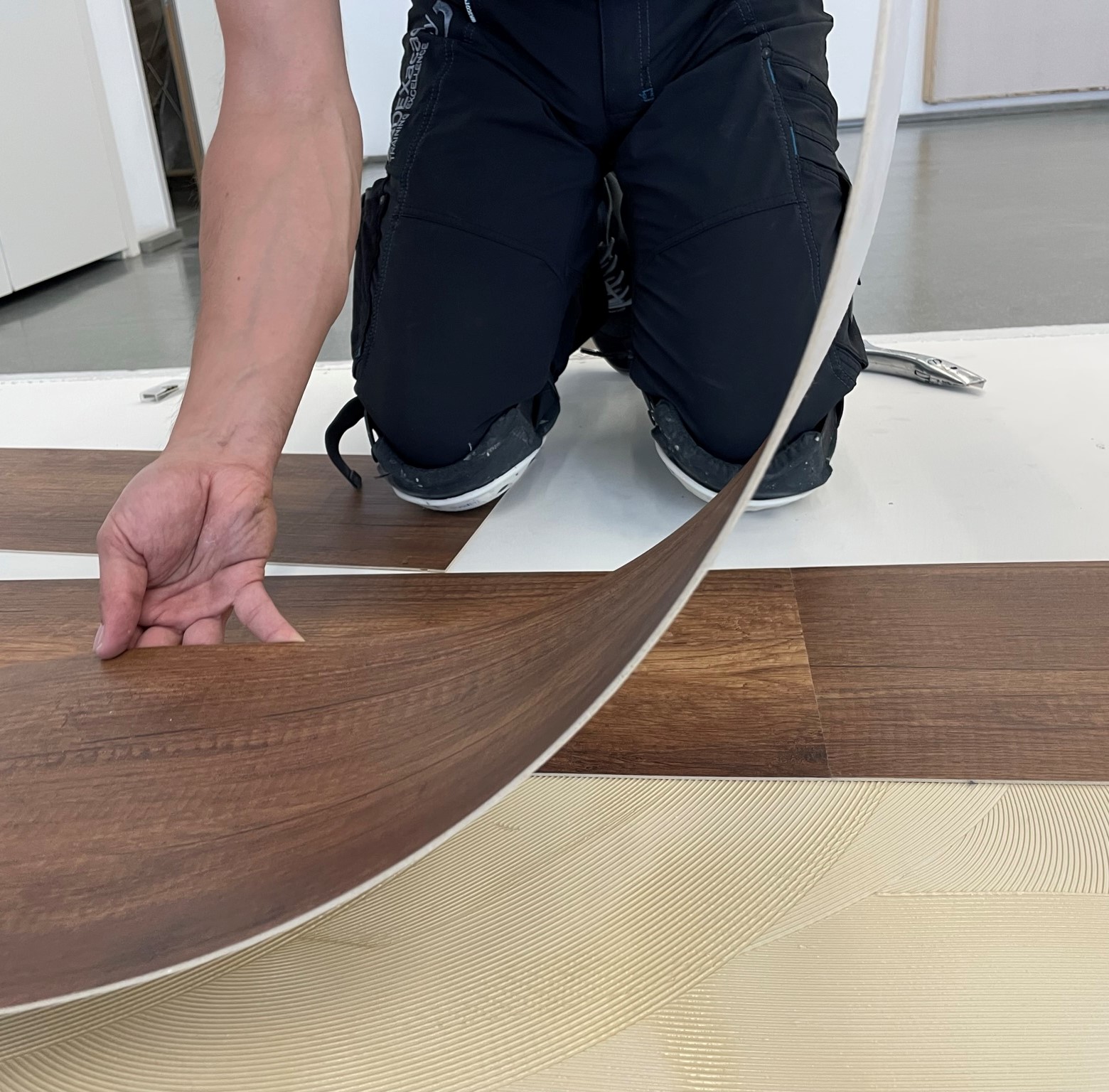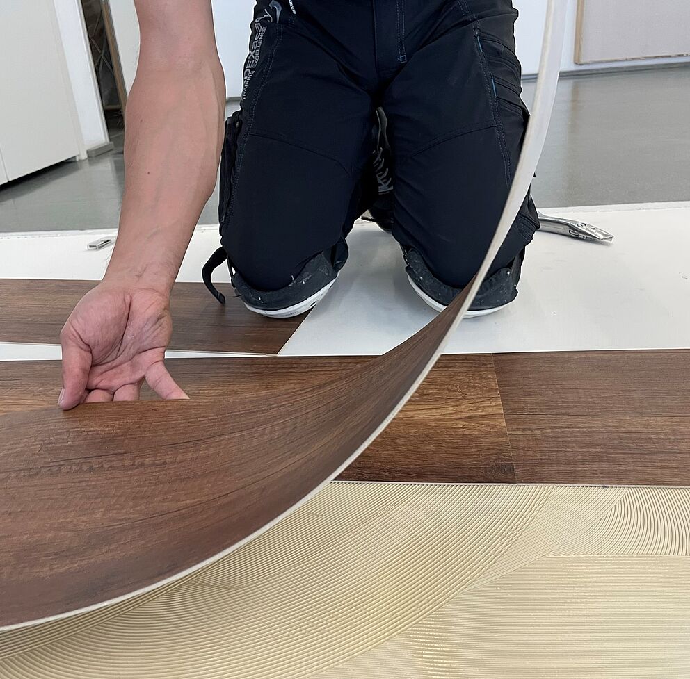 - Der Kleber sorgt für hohe Maßstabilität des verlegten Belags.