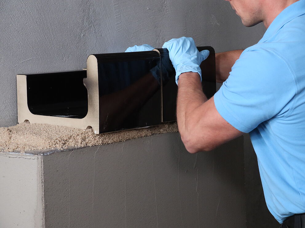 „Die neuen Manschetten sind extrem dünn und sehr dehnfähig“, erklärt Metz. „Der Werkstoff ist wasserdicht, leicht mit Messer oder Schere zu schneiden und lässt sich sehr gut in die Abdichtungsmassen einbetten, ohne dass dabei Falten entstehen. Gleichzeitig ist die Verbundfähigkeit zu den Abdichtungsstoffen hoch.“ Die geringe Materialdicke erlaubt zudem eine fast übergangslose Beschichtung mit den Ardex-Dichtmassen.