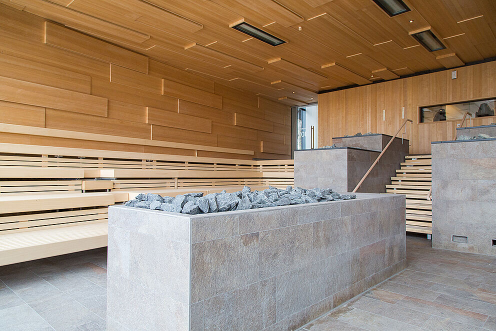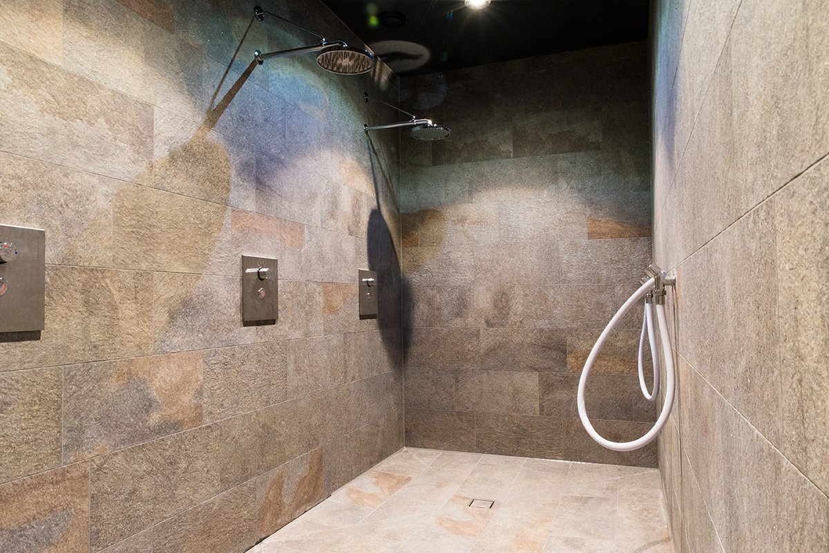 Während der Bauphase kam es immer wieder zu Änderungen und Ergänzungen. Wie das Badehaus, das zusätzlich errichtet wurde. „Wir hatten das volle Vertrauen des Architekten. Wenn er eine zusätzliche Idee hatte, haben wir das möglich gemacht“, so Reiser. Alle Ummauerungen der Saunaöfen sollten mit Feinsteinzeugfliesen bekleidet werden. „Da kam es dann darauf an, dass der Fliesenkleber auch hitzebeständig ist.“ Daher kam ARDEX X 77 zum Einsatz. Denn der faserarmierte MICROTEC Flexkleber ist ideal zum Kleben von Fliesen aus Steingut, Steinzeug und Feinsteinzeug, Beton- und Naturwerksteinplatten geeignet.