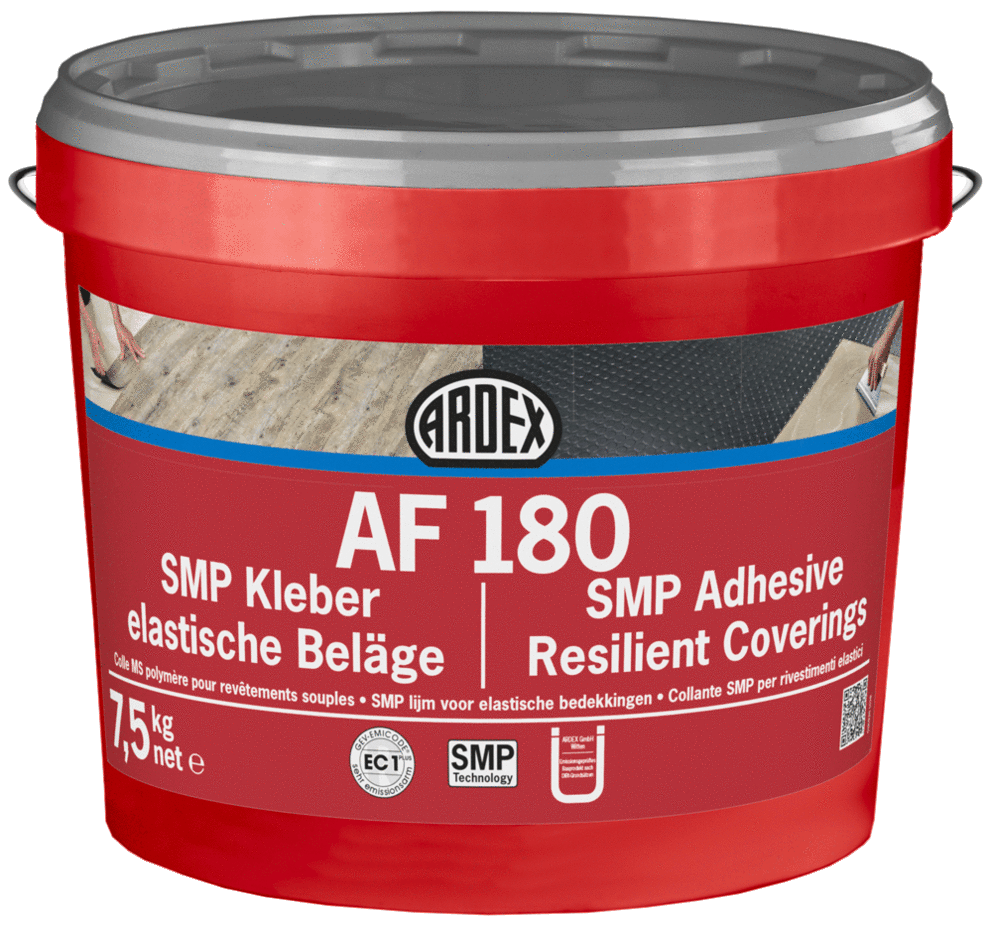 ARDEX AF 180 ist vor allem für „schwierige Fälle“ geeignet, zum Beispiel bei hoher Wärmeeinwirkung, starken mechanischen Belastungen oder viel Feuchtigkeit. „Der SMP-Klebstoff ist wasserfrei und löst sich durch Feuchtigkeit nicht an“, sagt Martin Kupka, Leiter Anwendungstechnik für den Bereich Boden/Wand/Decke bei Ardex. „Zudem verfügt er über eine hohe Klebkraft und harte, starre Klebstoffriefe. Deshalb ist er in Bädern ebenso gut einsetzbar wie in Wintergärten, bei bodentiefen Fenstern oder in Eingangsbereichen von Einkaufszentren, Flughäfen und Krankenhäusern. Ein echter ‚Draufgänger‘ für viele Herausforderungen also.“ Hinzu kommt die einfache Verarbeitung: ARDEX AF 180 ist einkomponentig und muss nicht angerührt werden.