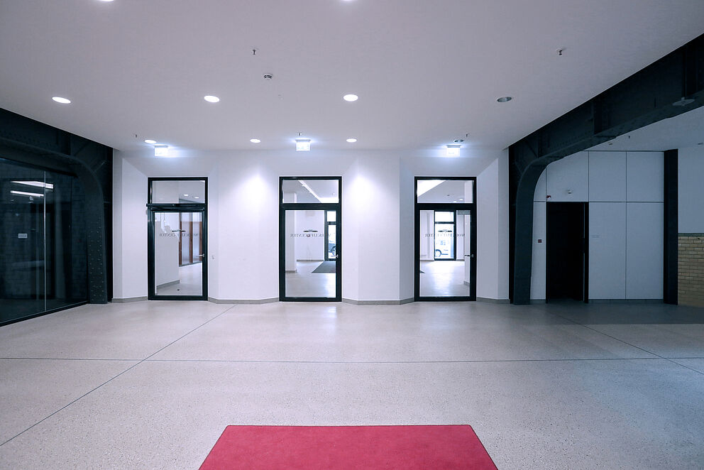 Wer das WLC besucht, hier arbeitet oder sich sportlich betätigen will, betritt das Gebäude über die weiträumige Lobby. Für einen freundlichen Empfang mit großzügiger Optik sorgt die Bodengestaltung mit ARDEX PANDOMO TerrazzoBasic. Die zeitlos-eleganten Flächen schaffen die perfekte Verbindung von Altem und Neuem.