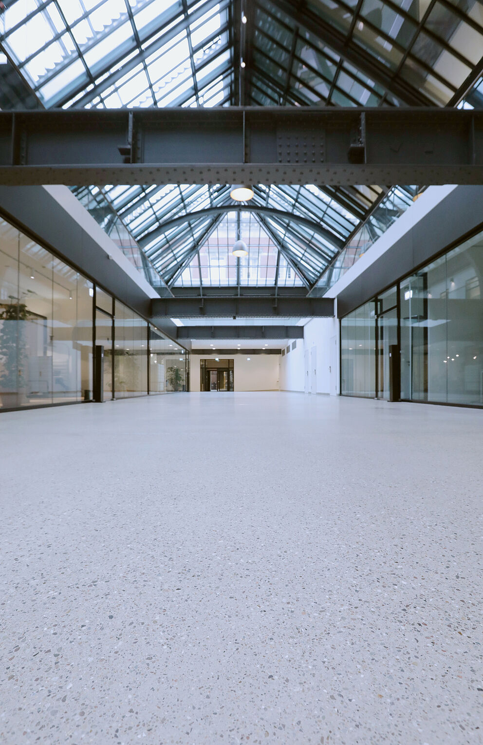 Im WLC ist ein Ort zum Arbeiten und Leben entstanden, der mit seiner offenen und eleganten Atmosphäre begeistert. Der ebenso schlichte wie dekorative Terrazzoboden ist dabei ein wahrer Blickfang.