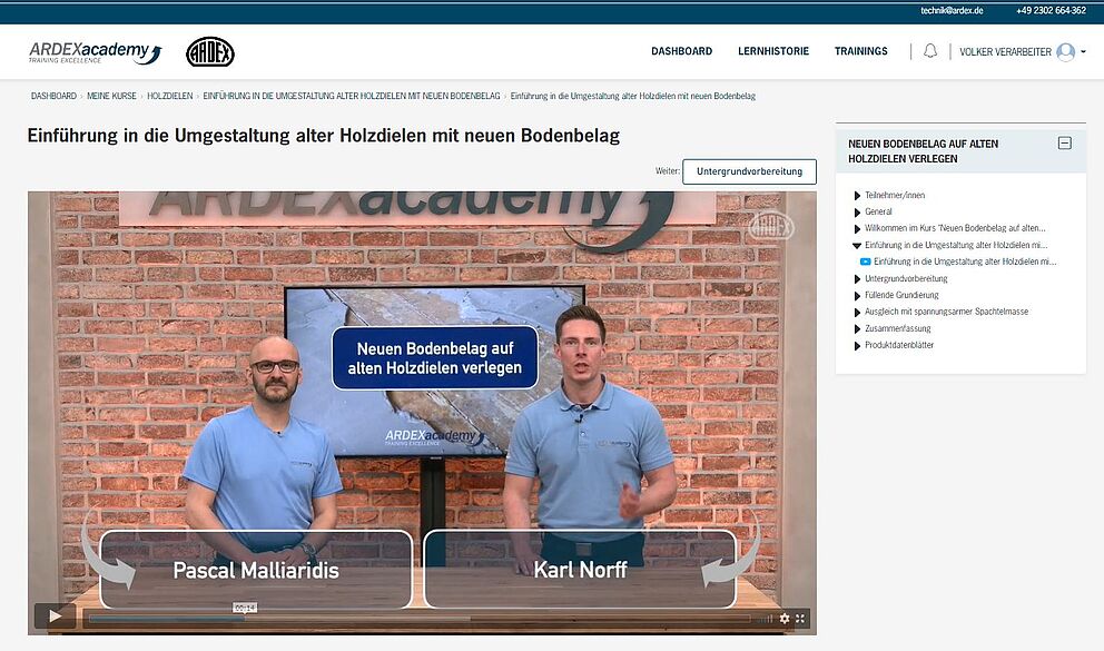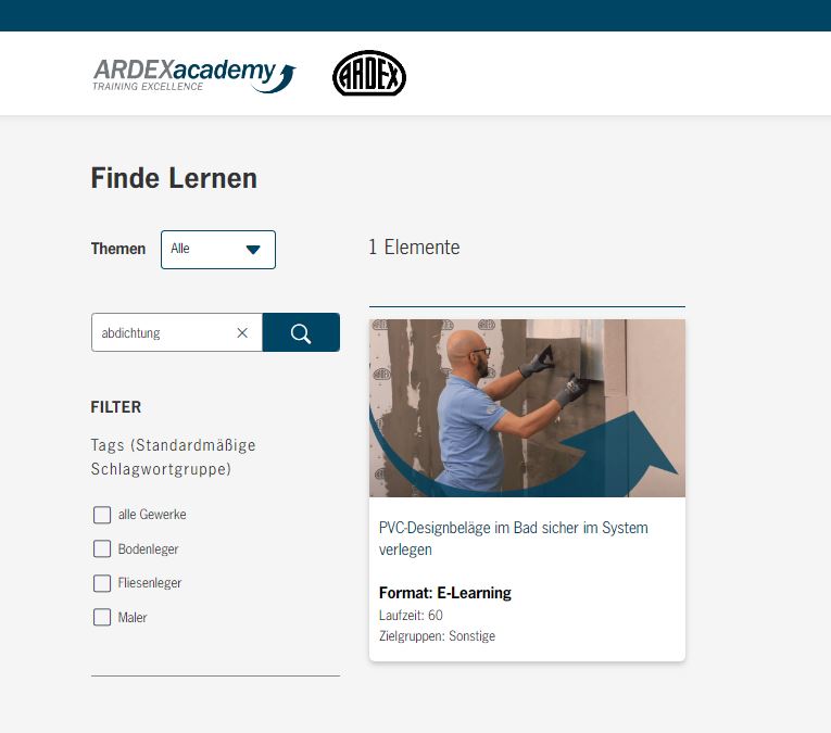 Auch inhaltlich hat Ardex einiges verändert. „Bei den neueren Produktionen stehen die Lösungen mehr im Vordergrund, nicht die einzelnen Produkte. Der Systemgedanke ist uns wichtig“, erklärt Geschäftsführer Markus Stolper. Wer sich für einzelne Produkte interessiert, kann die Informationen dazu jetzt direkt in den Kursen abrufen.