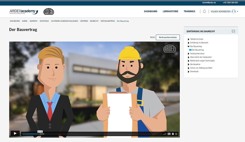 Aktuell bietet die Plattform mehr als 20 verschiedene Kurse an, mit fast 150 einzelnen Videos. Die Inhalte werden kontinuierlich aktualisiert und ergänzt. Von Anfang war es Ardex wichtig, die Möglichkeiten des E-Learnings zu nutzen und die Angebote konsequent interaktiv zu gestalten – also mit interaktiven Modulen wie Videos, animierten Inhalten oder auch der Möglichkeit, sich personalisierte Zertifikate herunterzuladen. „Mit dem Start der digitalen ARDEXacademy in der Coronazeit haben wir vermutlich einen guten Zeitpunkt erwischt. Nach zwei Jahren haben wir viele Erfahrungen gesammelt und bringen jetzt die verbesserte Version an den Start“, so Stolper weiter.