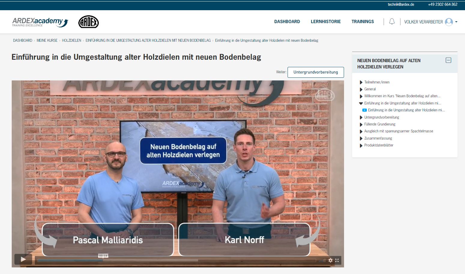 Bei Ardex in Witten ist die Freude über den Relaunch der E-Learning-Plattform auf jeden Fall riesig. „Wir haben die neue Handwerksschule zusammen mit Malern, Bodenlegern und Fliesenlegern entwickelt. Unser Ziel ist, ihnen zu helfen, noch besser zu werden“, fasst Dr. Stolper zusammen. „Deshalb haben wir die Plattform auch unter das Motto ‚wherever you are, whenever you like‘ gestellt. Denn wir wissen, dass Flexibilität oft ein Schlüssel zum Lernerfolg ist.“