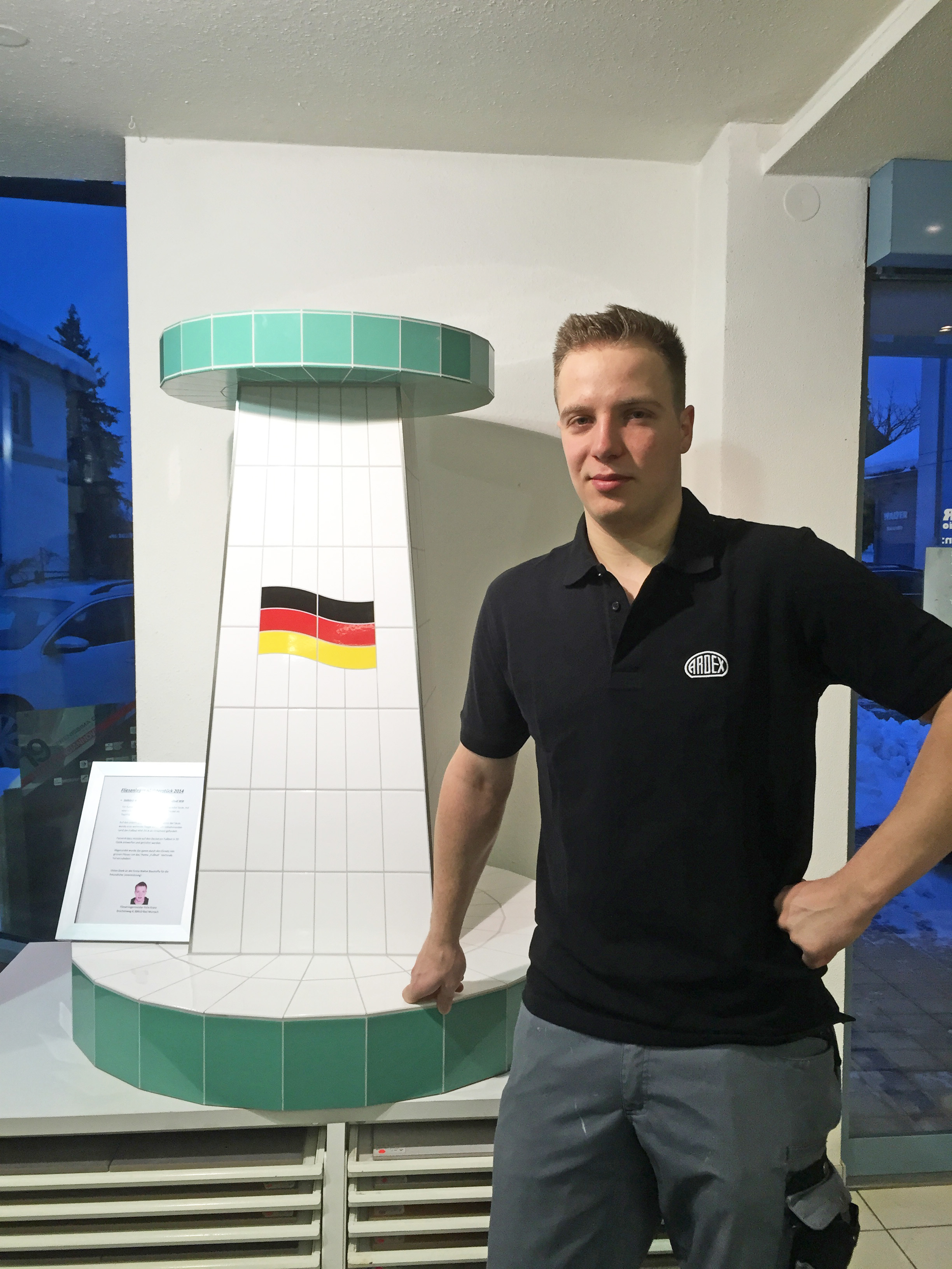 Im Betrieb seines Vaters ist Felix Kranz praktisch aufgewachsen. Von klein auf bewegte er sich auf den Baustellen. 2012 schloss er die Gesellenprüfung als Landessieger Baden-Württemberg ab und wurde Deutscher Meister der Fliesenleger beim Bundesleistungswettbewerb des Zentralverbands des Deutschen Baugewerbes (ZDB). Ein großer Fußball-Fan ist Felix Kranz dagegen nicht. Umso beeindruckender, dass er es auch bei seinem Stehtisch im Fußball-Design zur Meisterschaft brachte.