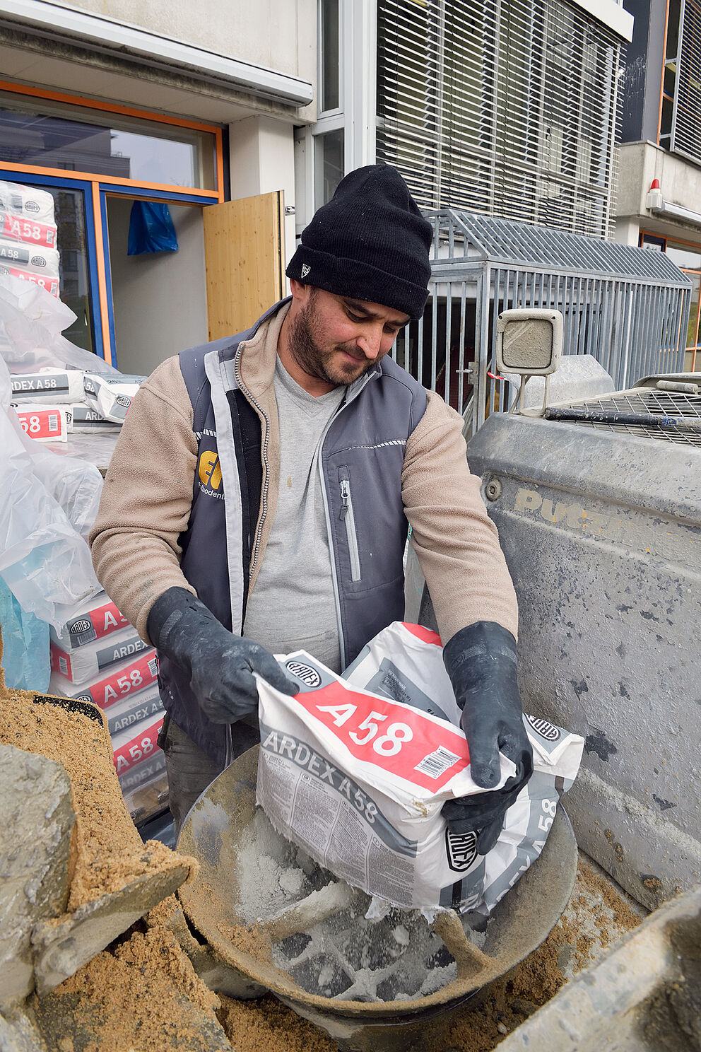 Die Zeit war knapp, denn die nächsten Gewerke sollten schnellstmöglich weiterarbeiten können. Zudem war eine Estrichdicke von mindestens 40 mm erforderlich. Daher empfahlen die Profis von EFT Erez Fußbodentechnik aus Dreieich den Schnellestrich-Zement ARDEX A 58. „Wir vertrauen da voll auf die Erfahrung der beauftragten Unternehmen. Denn diese treten schließlich in Gewährleistung“, so Alper Demir.
