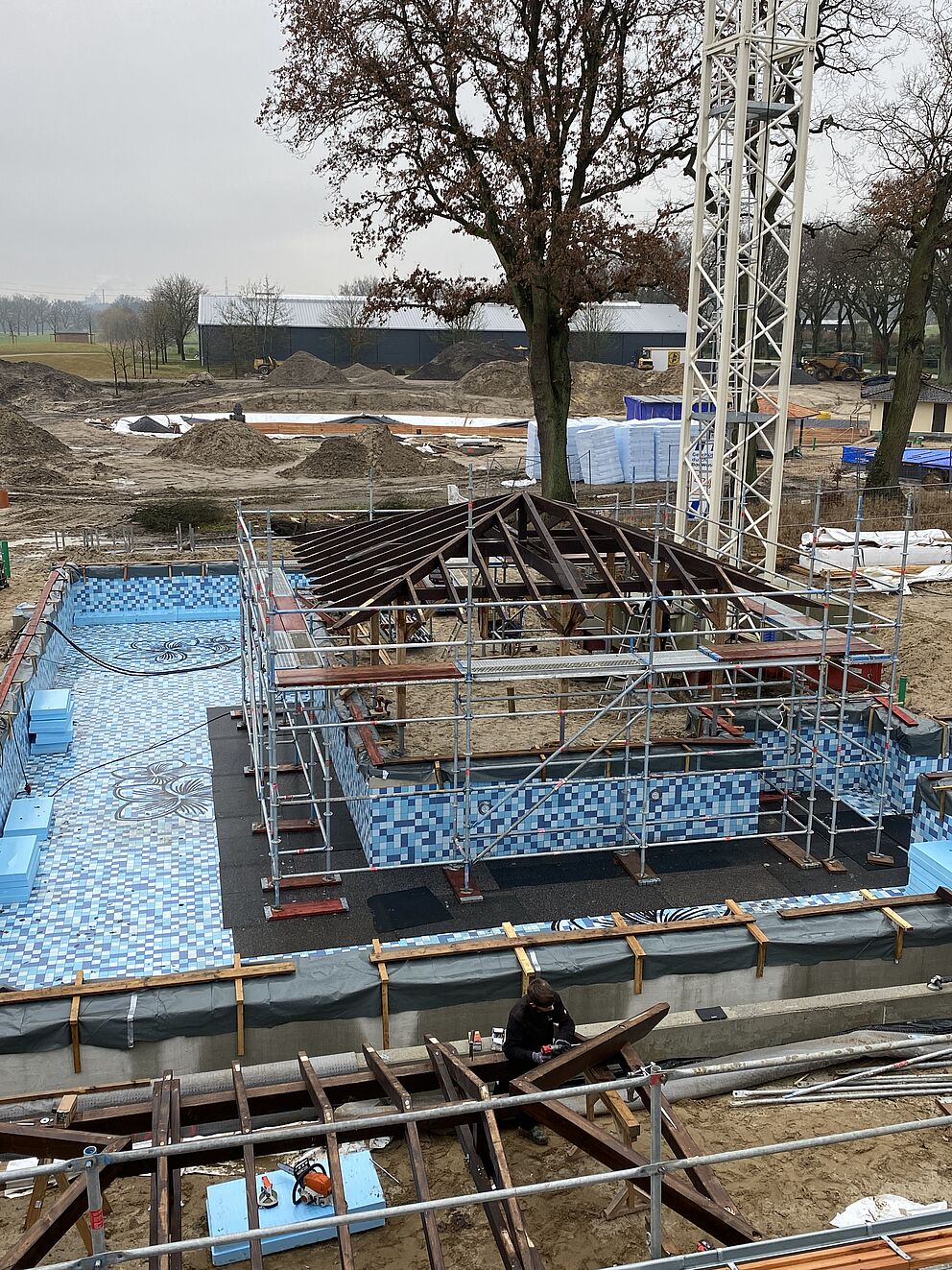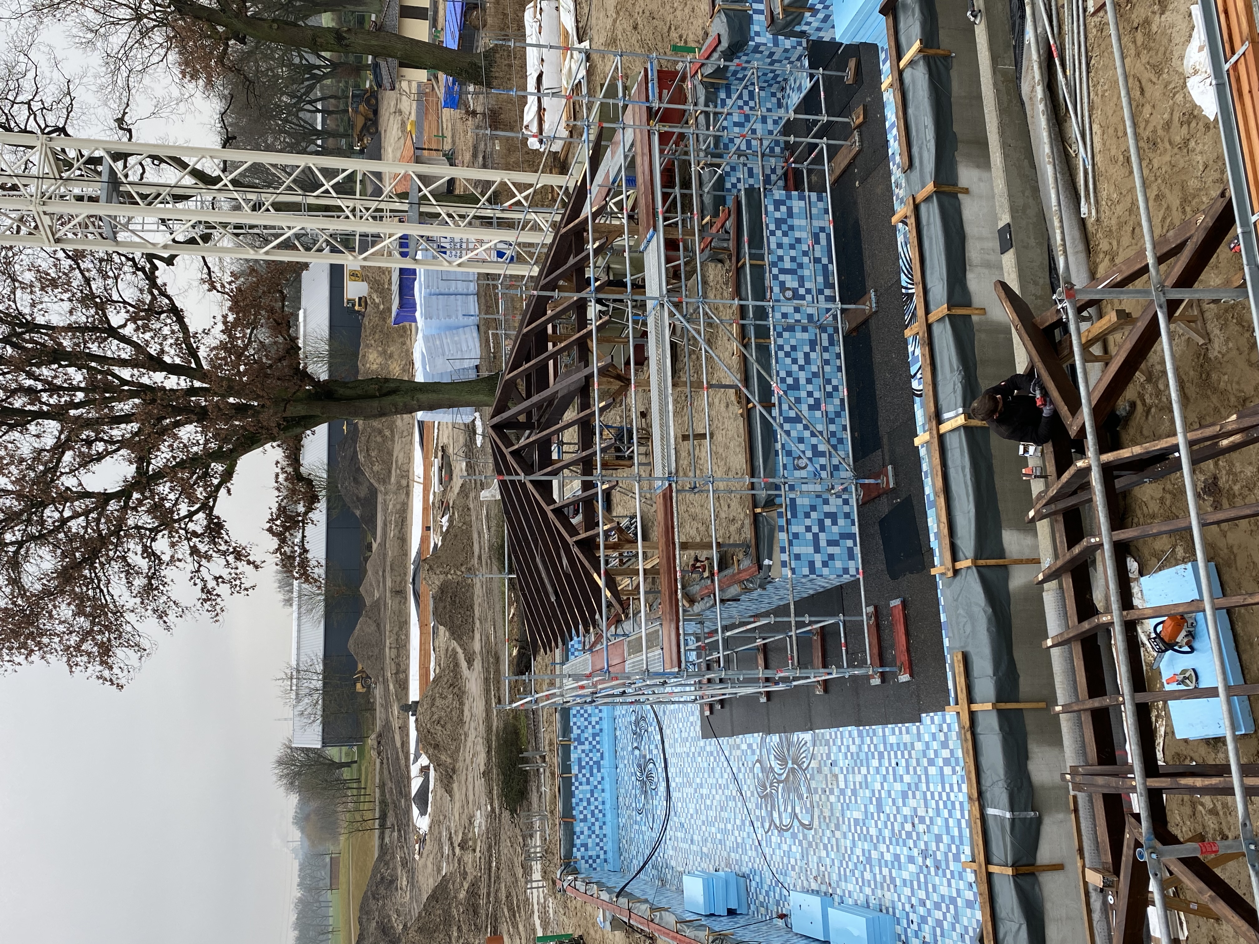 Handwerkskunst war auch für die beiden Warmwasserbecken auf dem Dach der Wellnessoase gefragt. Hier können die Besucher die Seele baumeln lassen, die Natur genießen und sicher sein, in einem ästhetisch anspruchsvollen und fachlich hervorragend erstellten Becken zu entspannen. „Die Becken mussten sicher abgedichtet werden“, erklärt Ardex-Gebietsleiter Detlef Hinkelmann, der die Bauarbeiten fachlich begleitet hat. Zum Einsatz kam daher die Tricom Dichtbahn ARDEX SK 100 W, die unter anderem speziell für den Schwimmbadbau entwickelt wurde. Die Vorteile: Sie ist wasserdicht, rissüberbrückend und gewährleistet eine gleichmäßige Schichtdicke.