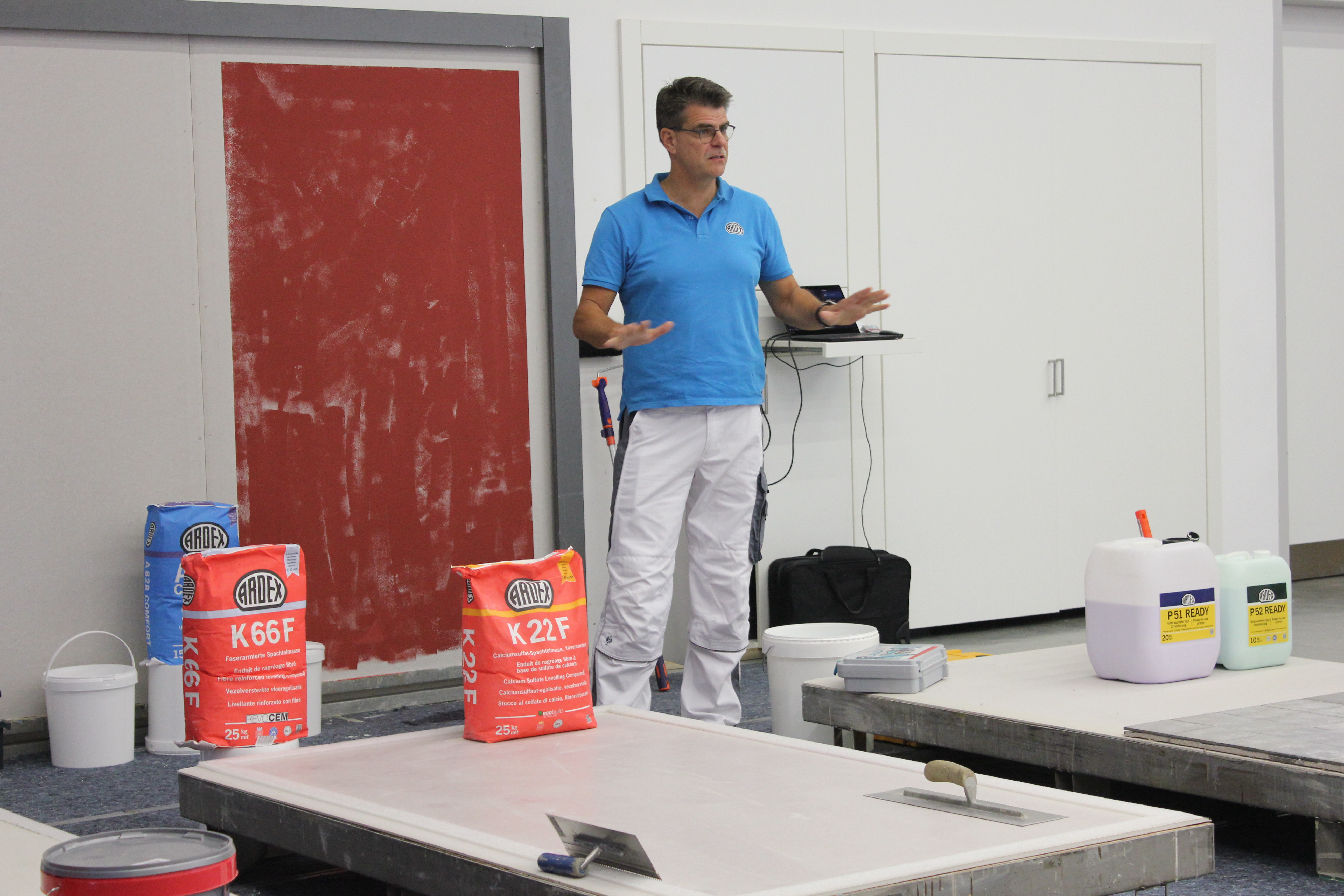 „Wir vermitteln unseren Anwendern, wie sie mit unseren Produkten qualitativ hochwertige Arbeiten ausführen können – und dabei wirtschaftlich und effizient arbeiten“, sagt Emanuel Schreiber, Leiter der Anwendungstechnik bei Ardex. „Dabei sprechen wir auch rechtliche Fragen oder das Thema Nachhaltigkeit an. Und wir geben Tipps für den Verkauf. Denn auch ‚Klappern‘ gehört schließlich zum Handwerk.“ Darüber hinaus sammeln die Teilnehmer der Fliesen-Seminare Punkte im Rahmen von „Zert-Fliese“, dem Qualifizierungsprogramm des Fachverbands Fliesen und Naturstein im Zentralverband des Deutschen Baugewerbes.