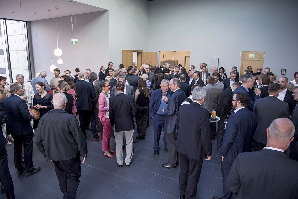 Die feierliche Eröffnung der diesjährigen Kunstausstellung brachte einen neuen Besucherrekord. Die Vernissage am Abend des 30. Mai wendete sich als Ereignis außerhalb des Tagesgeschäfts an Kunden, Partner und Mitarbeiter des Unternehmens sowie an Vertreter des regionalen Umfelds. Mark Eslamlooy, Vorsitzender der Geschäftsführung von Ardex und CEO der Ardex-Gruppe, eröffnete die Ausstellung.