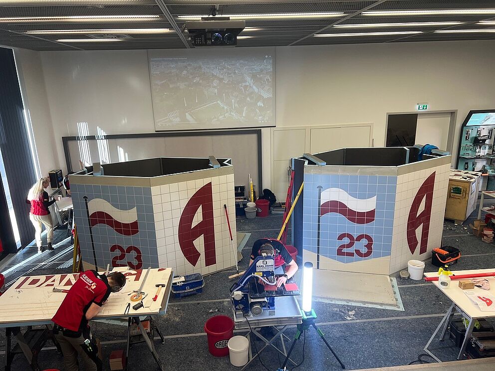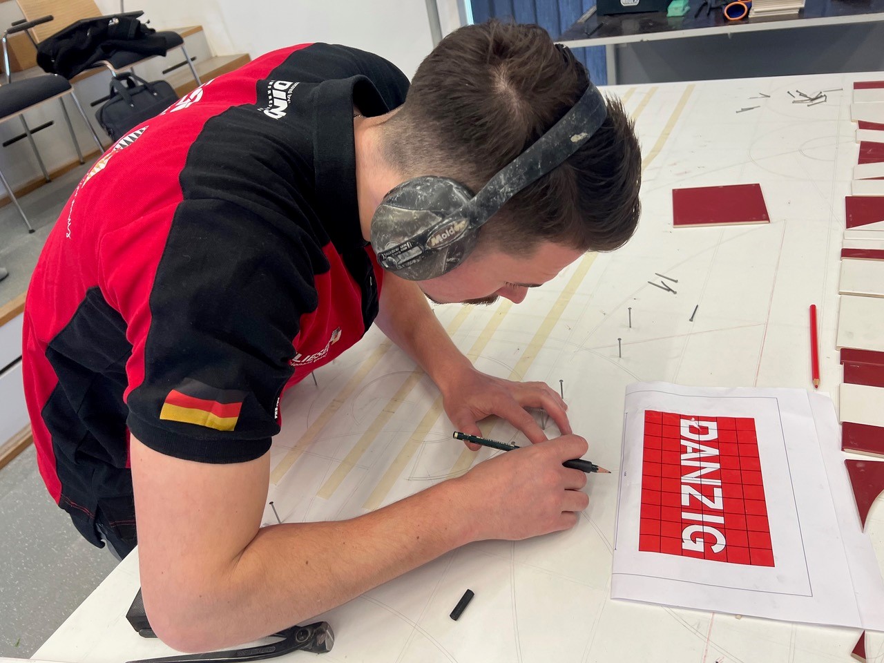 „Diese Qualifikationsrunde war überaus ausgeglichen“, fasst Bundestrainer Tim Welberg das Wettkampftraining zusammen. „Alle haben sich an die Zeitvorgabe gehalten und Topleistungen gezeigt. Dieses Training hat deutlich gemacht, dass sich die Leistungen der Teammitglieder nochmals gesteigert haben.“ Polen und der Teampartner Ardex waren das Gestaltungsmotiv: Auf eine Wand wurde die polnische Flagge gefliest, die andere bekam das „A“ aus dem Namen des Sponsors. Zudem gestaltete das Team den Wandboden mit dem Austragungsort der EuroSkills 2023: Danzig. Die Gastgeber des Trainings waren sehr beeindruckt von den Leistungen der drei Fliesenleger. „Es ist toll, was die Jungs leisten – sie sind wirklich mit großer Konzentration und viel Freude dabei“, sagt Richard Herwartz-Emden, Teamleiter Fliese/Bau bei Ardex. „Und für uns als Bauchemiehersteller ist es natürlich extrem wichtig, den Nachwuchs zu fördern und für das Handwerk zu begeistern.“