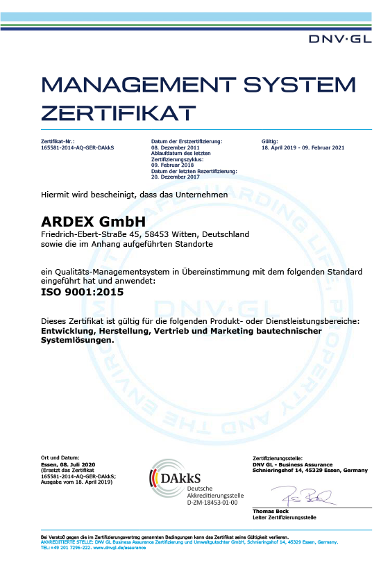 Die Management System Zertifikate der ARDEX Matrixteilnehmer zum Download.