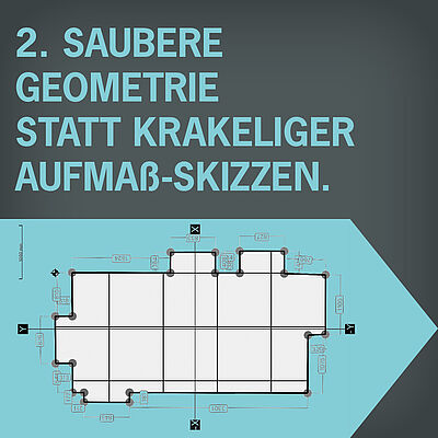 Mit Hilfe des patentierten digitalen Aufmaß-Systems lässt sich jeder Messpunkt schnell und eindeutig definieren. Nach der anschließenden Messwert-Übertragung in die Aufmaß-App wird die Geometrie sofort ersichtlich und kann einfach angepasst werden.
