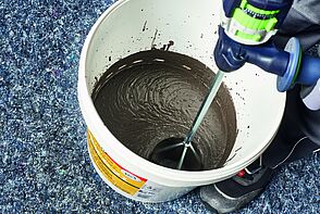 Beide Komponenten sind als Set in einem Anrühreimer gepackt und können darin direkt angerührt werden. So kann es auf der Baustelle sofort losgehen.