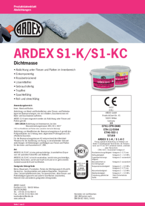 ARDEX S1-K PLUS Datenblätter und Downloads: