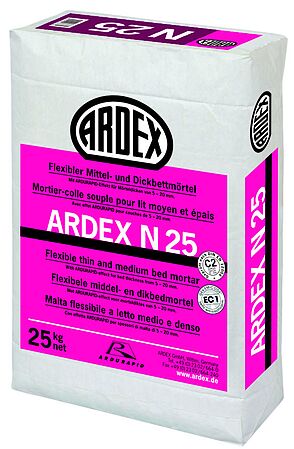 Mögliche Produkte sind: ARDEX X 32 (Achtung, hier ist eventuell eine Mischung mit Sand und eine Abspachtelung der Rückseite der Platten empfohlen.)